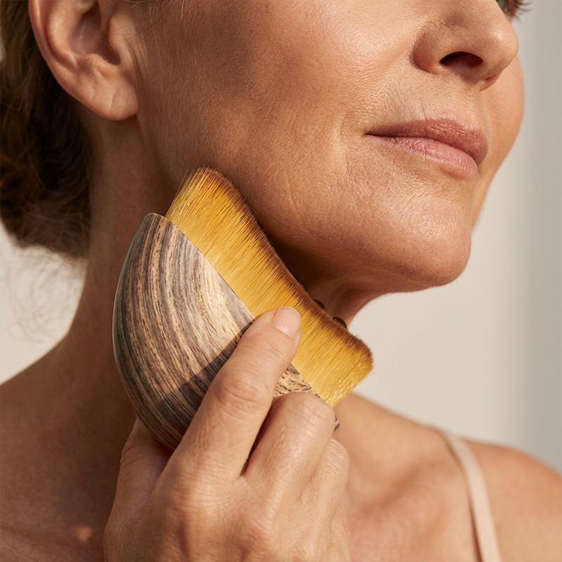 The massage brush features soft bristles that gently glide across your skin, promoting blood circulation and encouraging lymphatic drainage. This helps reduce puffiness and flush out toxins, revitalizing your complexion with each use.