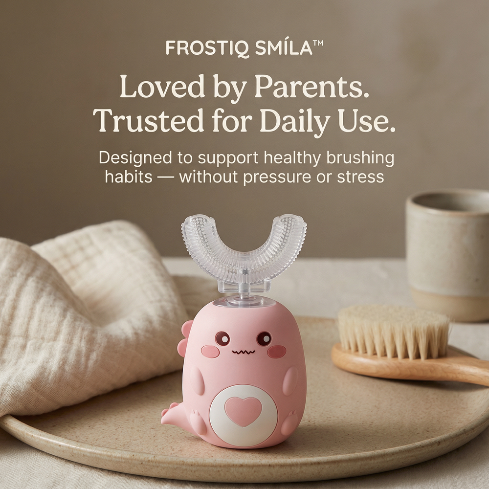 FROSTIQ SMÍLA™ was designed to make oral care simpler, gentler, and less stressful — especially for parents who worry they’re not doing enough.
